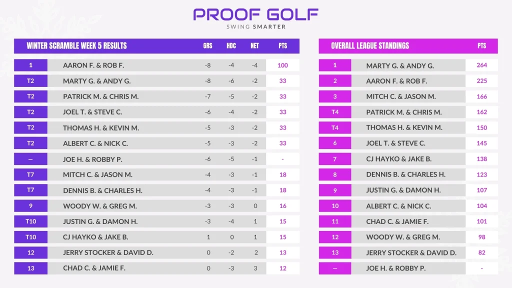 As winter kicks into full gear, we are launching a 2-Man Winter Scramble League here at Proof Golf that is competitive, handicapped, and has an awesome prize worth playing for! Here is everything you need to know!